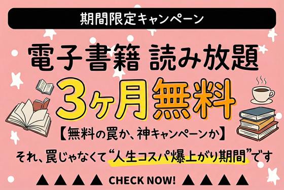 「Kindle Unlimited 3ヶ月無料」。いや、3ヶ月って盛りすぎじゃない? 普通30日でしょうよ、とスマホを二度見したのは僕です。